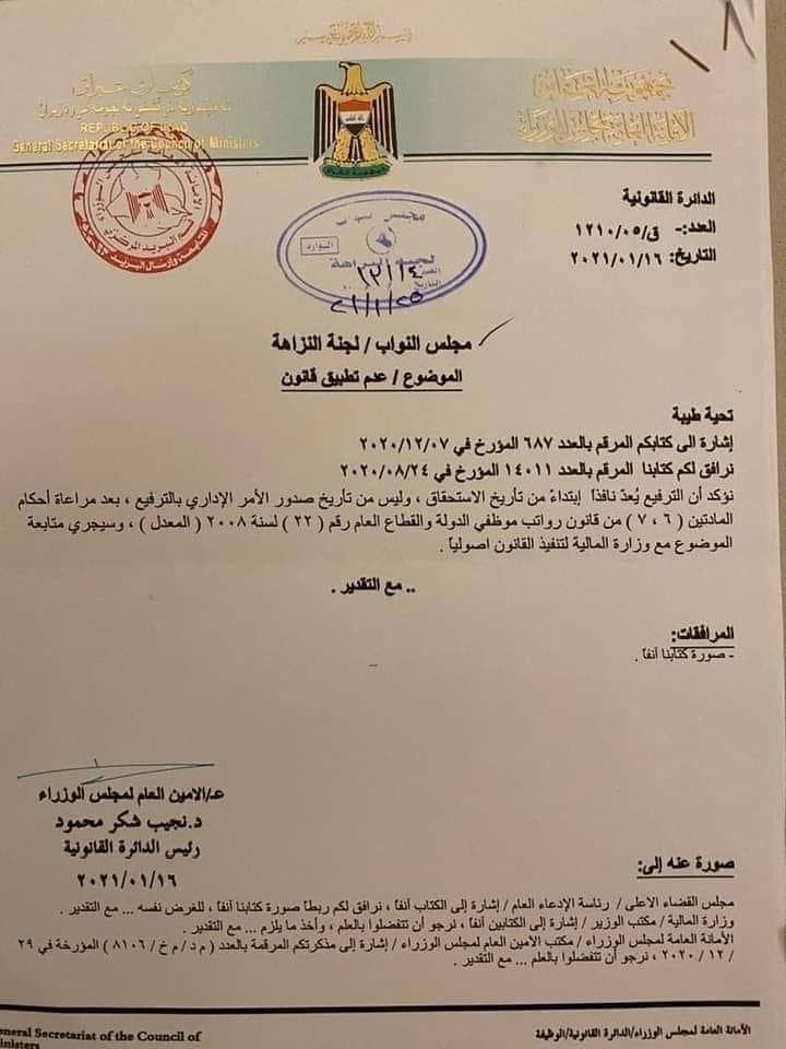 بالوثيقة… الحكومة: ترفيعات الموظفين من تاريخ الاستحقاق وليس من تاريخ صدور الأمر الإداري