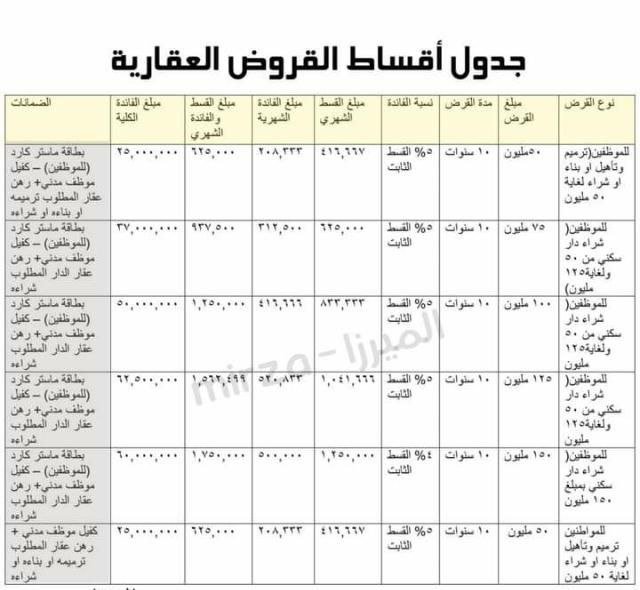 وبذلك ستكون فائدة ال(٥٠) مليون هي (٢٥) مليون وبتسديد شهري يعادل راتب موظف