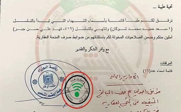 بالوثيقة.. مؤسسة الشهداء توافق على صرف المستحقات المالية لمحافظة ذي قار