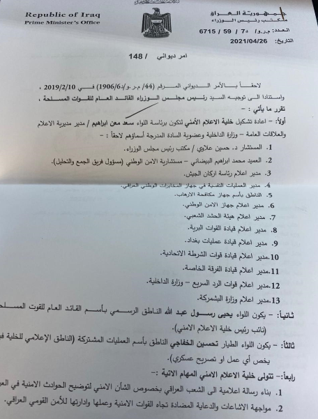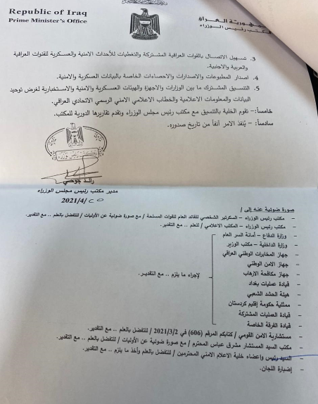 بالوثائق.. الكاظمي يعيد تشكيل خلية الإعلام الأمني