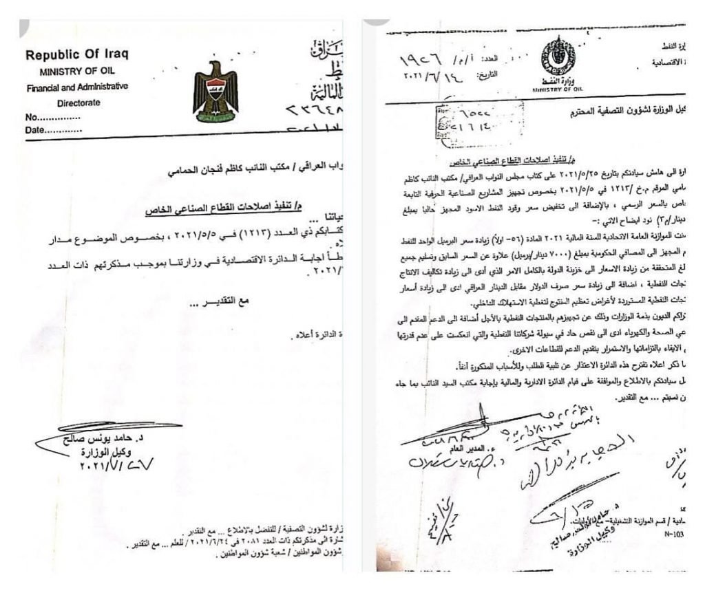 بالوثيقة: وزارة النفط تعتذر عن دعم القطاع الصناعي الخاص