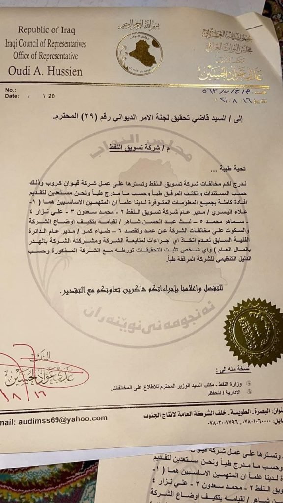 عاجل .. النائب عدي عواد يكشف بالوثائق الرسميه كيفية تهريب النفط العراقي من قبل شركات الاقليم