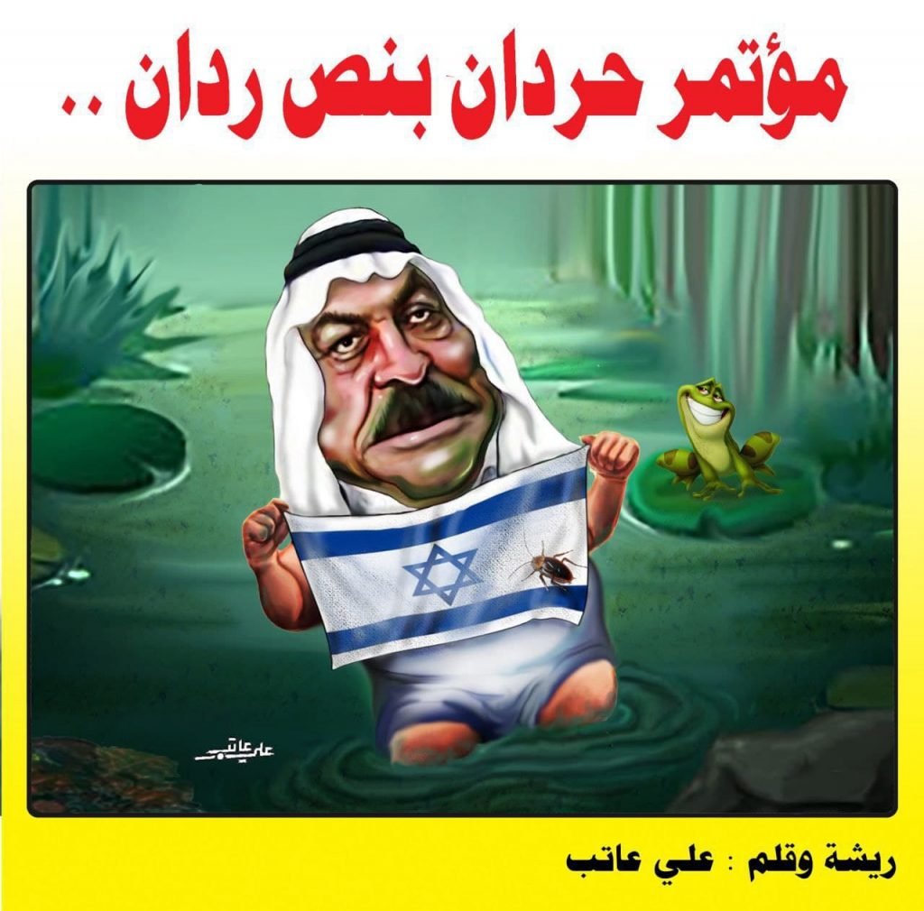 المدعو وسام الحردان يركض لاهثا وراء موائد الذل الممولة إماراتيا، والمدعومة أمريكيا، ليلتقط فتات ما يجود به (مطبخ إبراهام) المشبوه من وجبات طعام ملوثة ببكتريا الخيانة لقضية العرب والمسلمين الأولى في مطاعم أربيل التي تمردت على الثوابت والقيم الوطنية والشرعية والمنطلقات القانونية الرافضة للرضوخ والانسياق في مشروع (إبراهام) لجعل قتلة بني صهيون حمائم سلام، وخرق مضامين الدستور العراقي المناهض للتقارب مع الكيان الصهيوني الغاصب.