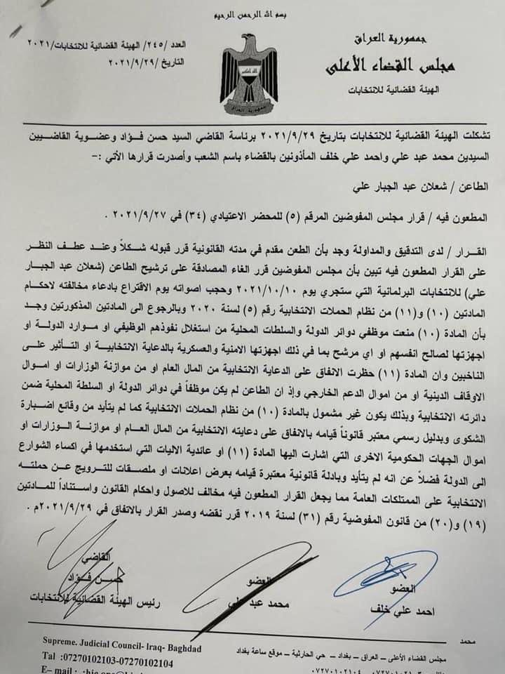 بالوثيقة.. القضاء يعيد شعلان الكريم للسباق الانتخابي