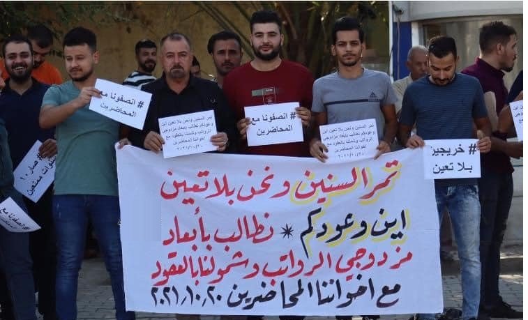 إسوة بالمحاضرين.. خريجو خانقين يتظاهرون للمطالبة بالتعيين