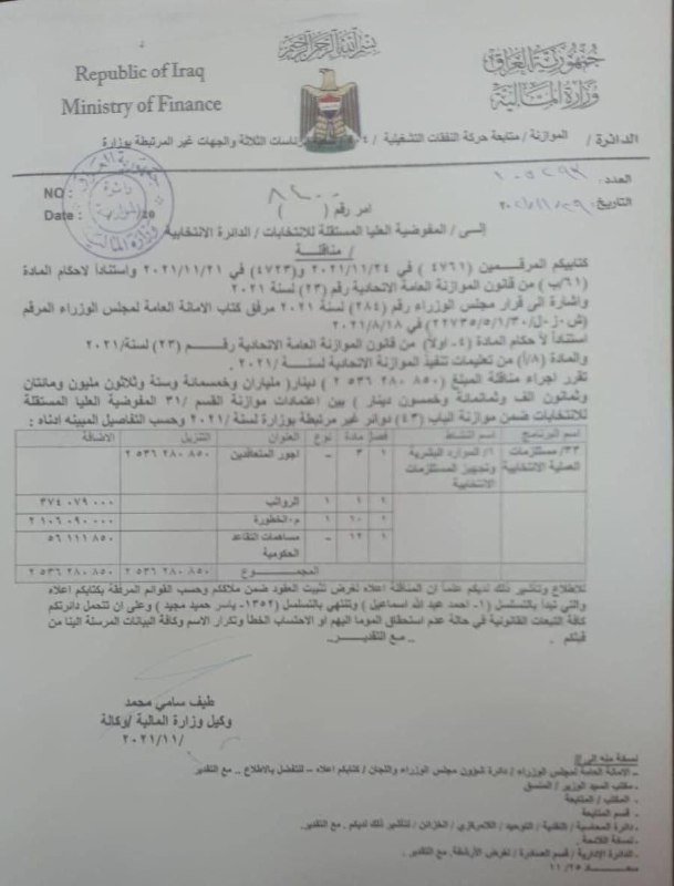 بالوثيقة.. المالية توافق على تثبيت المتعاقدين في مفوضية الانتخابات