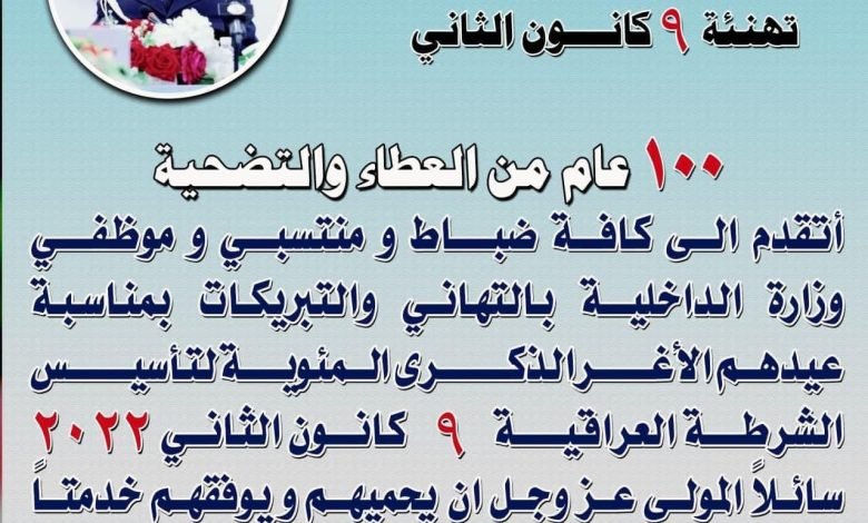 بمناسبة الذكرى المئوية لتأسيس الشرطة العراقية 9 كانون الثاني من كل عام ..