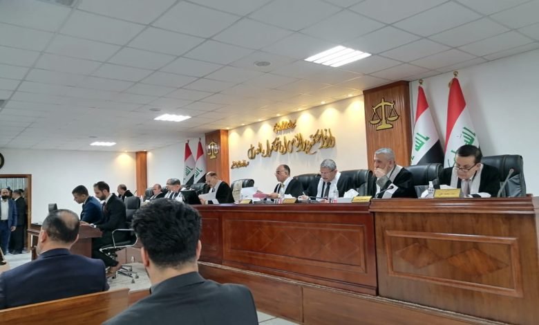 قضاة المحكمة الاتحادية يدخلون الى قاعة الجلسة المخصصة بالنظر في الدعوى المرفوعة بشأن شرعية جلسة البرلمان الأولى