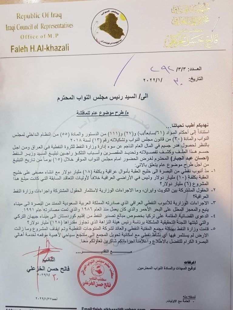 _أنشاء خطوط ناقلة للنفط باتجاه العقبه هو ارضاء لأمريكا وعلى حساب الشعب العراقي ونرفضه لعدم وجود جدوى اقتصادية.