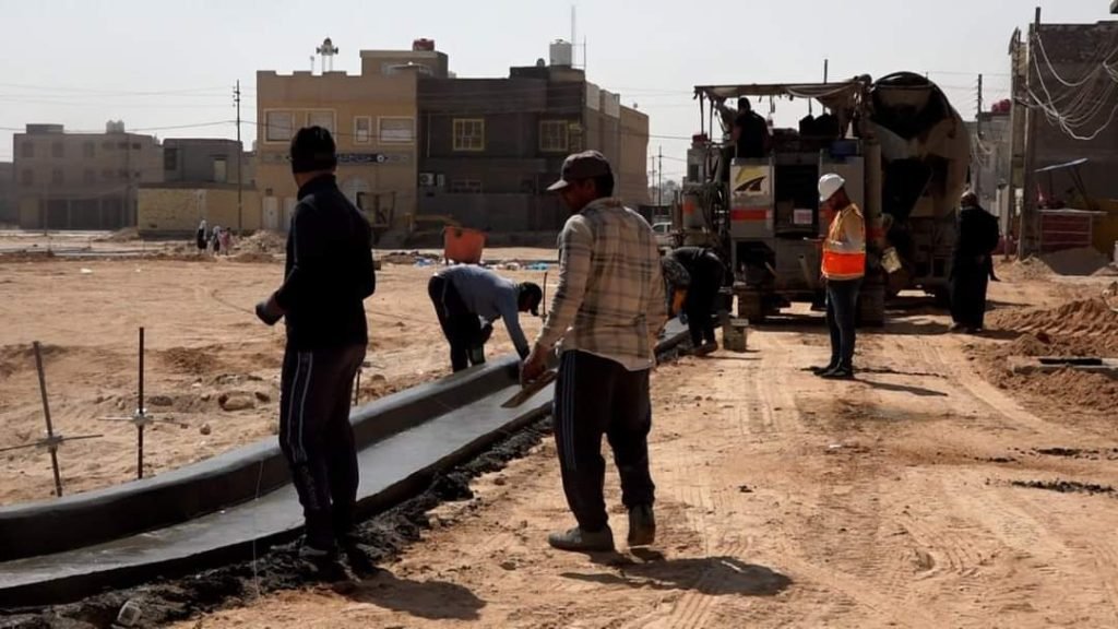 مشروع ايصال كافة الخدمات الى منطقة ملحق الفارس تصل الى مستويات متقدمة بعد الوصول الى اعمال صب البوركيربر وتهيئة الطرق للاكساء