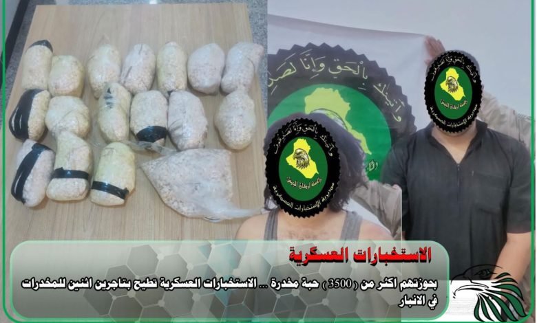 الإطاحة بتاجرين للمخدرات بحوزتهما أكثر من 3500 حبة في الانبار