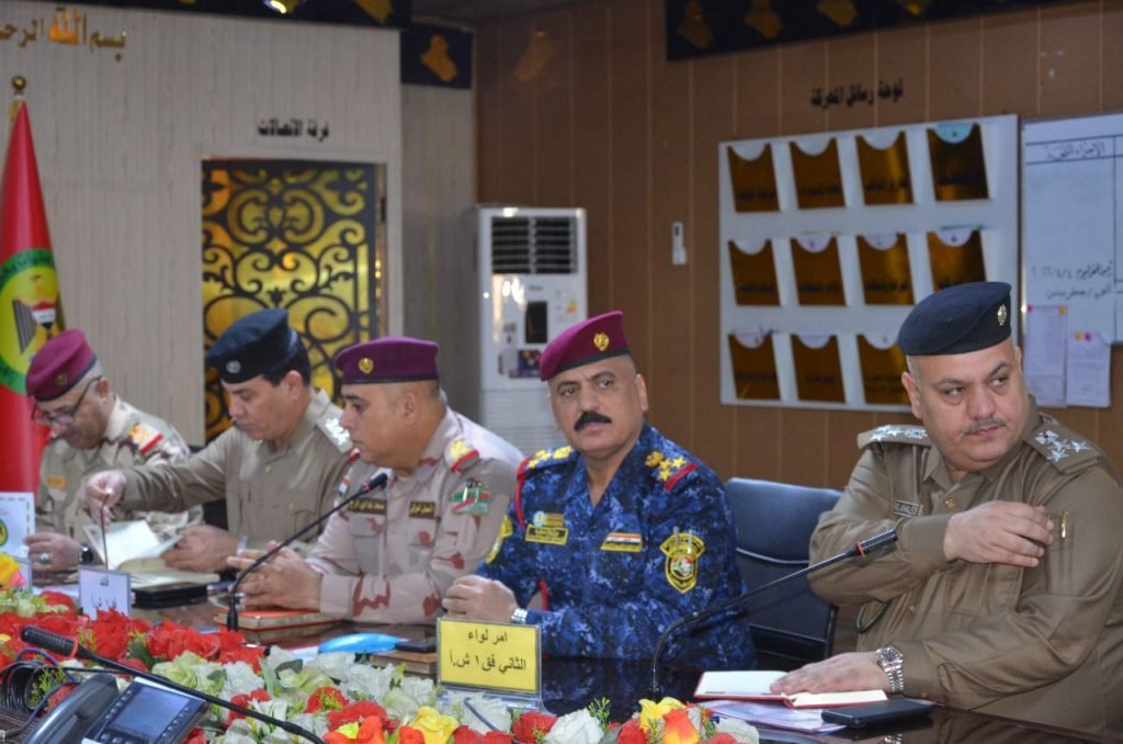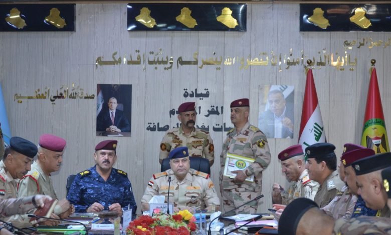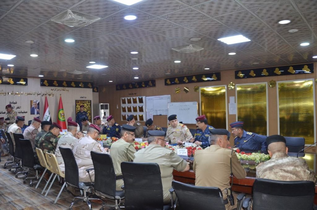 ترأس الفريق الركن قائد عمليات بغداد مؤتمراً أمنياً صباح اليوم في المقر المتقدم لعمليات بغداد/الرصافة، وذلك بحضور اللواء قائد المقر المتقدم لعمليات بغداد/الرصافة واللواء الركن نائب القائد لشؤون الداخلية واللواء الركن معاون القائد/الرصافة وقادة الفرق وآمري التشكيلات العسكرية والمعاونين الامنيين ومدراء الاجهزة والوكالات الاستخبارية، وذلك لمتابعة الموقف الامني في جانب الرصافة والاجراءات المتخذة لتعزيز الامن والاستقرار وفض النزاعات وملاحقة العناصر الارهابية والخارجين على القانون ومرتكبي الدكة العشائرية”ارهاب الاحياء السكنية” وعناصر الجريمة المنظمة وتجار ومروجي المواد المخدرة والسموم واتخاذ اقصى اجراءات الردع والمحاسبة فضلاً عن تفعيل مذكرات القبض بحقهم بالتنسيق مع مراكز الشرطة والقضاء، كما وعلى القوة الماسكة ودوريات النجدة رد الفعل السريع تجاه اي حادث يحصل مع التركيز على ضرورة تفعيل الجهد الاستخباري من خلال خلايا الاستخبارات ضمن قواطع المسؤولية موجهاً بمحاسبة المقصرين في أداء واجباتهم، وفي سياق متصل أكد قائد العمليات على الاستمرار بواجبات البحث والتفتيش ومصادرة الأسلحة والأعتدة الغير مرخصة واتخاذ الاجراءات الحازمة بصدد من يحمل السلاح واطلاق النار لأي سبب واحالتهم الى الهيئات التحقيقية وفق المادة 2/4 ارهاب،