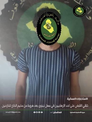 بعمليات نوعية واستباقية منفصلة نفذت في قواطع العمليات استناداً الى معلومات استخبارية دقيقة لقسم استخبارات قيادة عمليات الجزيرة وشُعبْ استخبارت الفرق السابعة والعاشرة والخامسة عشر والسادسة عشر والعشرون وهي من مفاصل مديرية إلاستخبارات العسكرية في وزارة الدفاع وبالتعاون مع قوات مشتركة من قيادة القوات البرية اسفرت عن القاء القبض على ثمانية ارهابيين مناصفة بين غربي نينوى والانبار احدهم كان من الهاربين من مخيم الخازر للنازخين في الموصل .