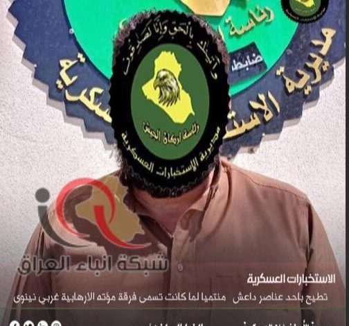 الاستخبارات العسكرية تطيح باحد عناصر داعش ينتمي لما تسمى فرقة مؤته الارهابية غربي نينوى بعملية نوعية تميزت بدقة المراقبة والمعلومة المؤكدة لشعبة استخبارات الفرقة ١٥ وباسناد قوة تابعة لقيادة القوات البرية تم خلالها مداهمة مكان تواجد احد الارهابيين في قرية الصمود بناحية زمار غربي نينوى .
