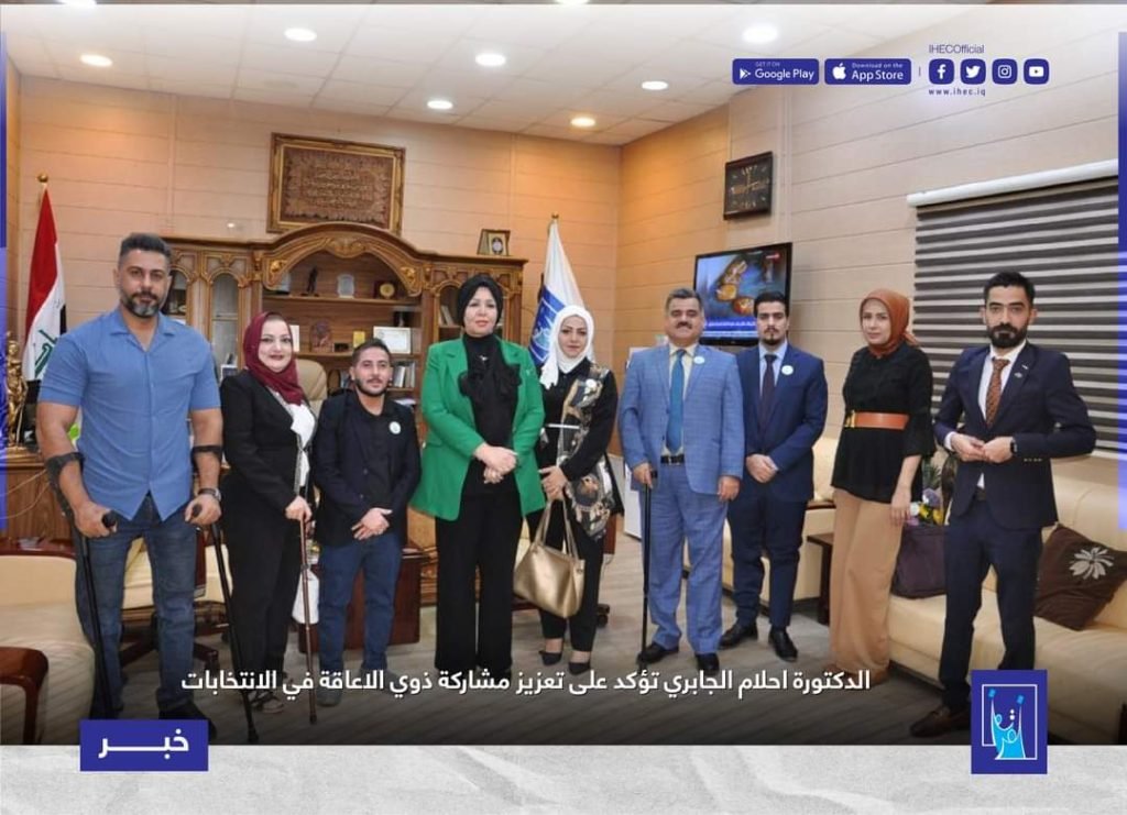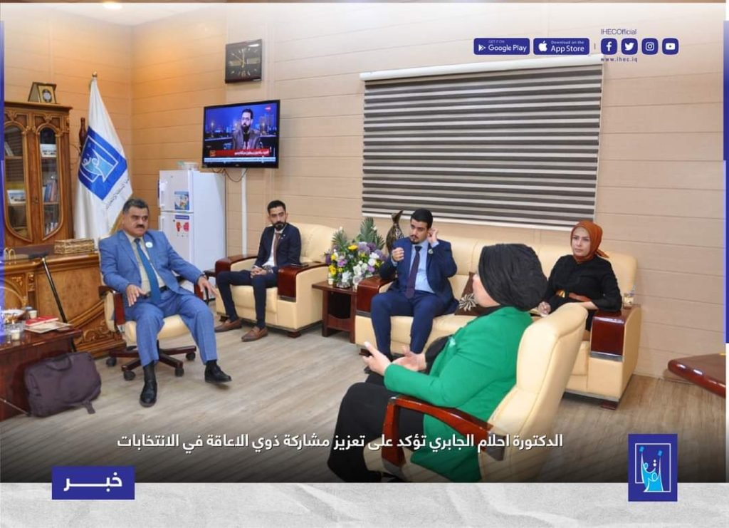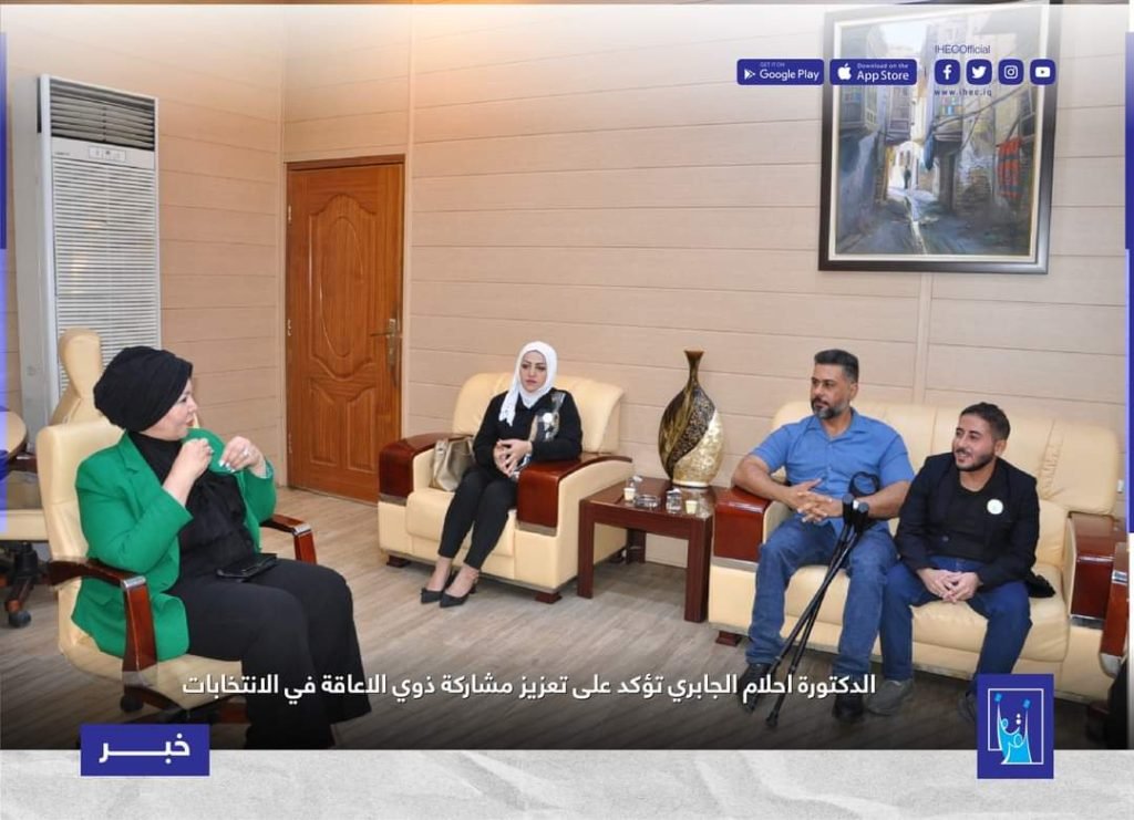 حيث اكدت السيدة الجابري على تعزيز اسهام شريحة ذوي الاعاقة في الحياة السياسية وضمان فرصة مشاركتهم في العملية الديموقراطية من خلال تقديم الدعم اللازم لهم وتسهيل مشاركتهم في الانتخابات بسهولة .