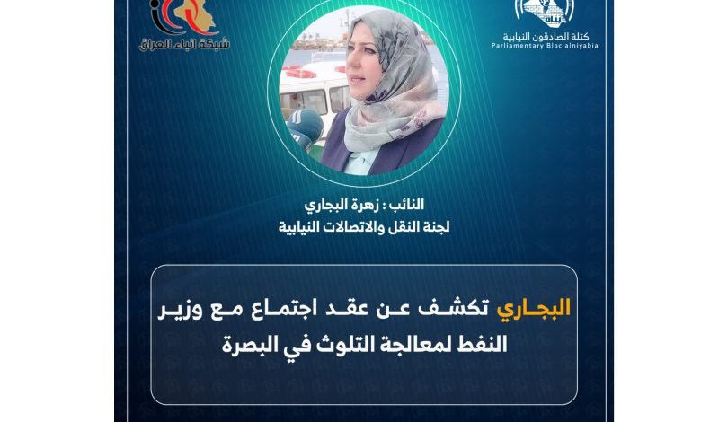 أكدت النائب عن محافظة، البصرة زهرة البجاري، اليوم السبت، ان نواب المحافظة اجتمعوا مع وزير النفط الجديد حيان عبد الغني لمعالجة مشكلة التلوث في البصرة والعمل المشترك لمحاسبة فساد الوزير السابق وفقا للاطر القانونية .
