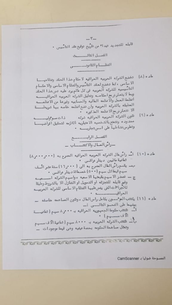 وبموجب ذلك مارست الشركة اعمالها على 38 عاماً، الا ان الايدي الملوثة بالمال الحرام من النواب البرلمانيين المعروفين بالفساد والابتزاز وفرض الاتاوات على اغلب المؤسسات المالية والتجارية والزراعية والصناعية الخاصة بل وحتى المؤسسات الحكومية التي رضخ رؤساؤها ومدراؤها للدفع وتنفيذ رغبات نواب العار هؤلاء مخافة اثارة الزوابع والاتهامات حولهم او الاستجوابات البرلمانية والمطالبة باقصائهم تحت ذرائع ملفّقة كاذبة.