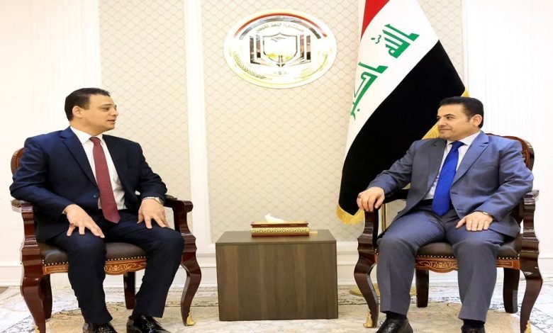 وذكر المكتب الإعلامي لمستشار الأمن القومي في بيان، أن “مستشار الأمن القومي قاسم الأعرجي، استقبل اليوم بمكتبه، السفير المصري في بغداد وليد محمد إسماعيل”، مبيناً أنه “جرى خلال اللقاء، استعراض الأوضاع السياسية والأمنية، على الصعيدين الإقليمي والدولي، فضلا عن بحث تعزيز علاقات التعاون مع الدول العربية”.