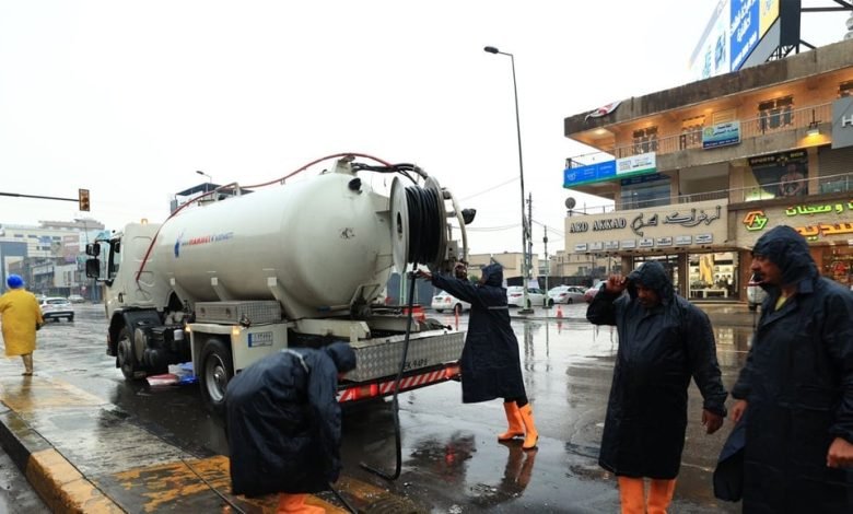 وشهدت العاصمة بغداد هطول كميات من الأمطار، ما تسبب بغرق بعض المناطق.