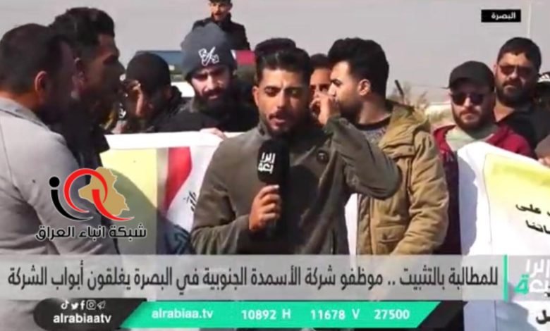 والمصور علي الماسي خلال تغطية تظاهرة لعدد من موظفي شركة الأسمدة، وبالرغم من أن الزميلين في (قناة الرابعة) كانا يقومان بواجبهما في نقل الاحداث بكل مصداقية ومهنية .
