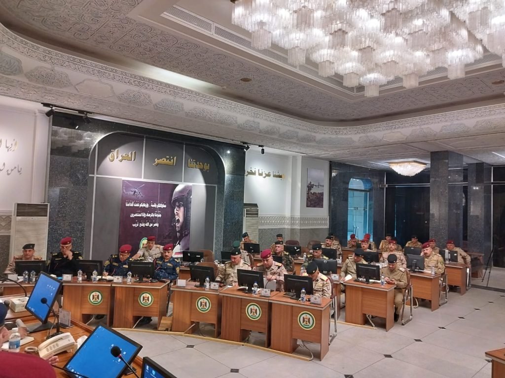 الفريق الركن قائد العمليات يترأس مؤتمرا امنياً مع قادة المقرات المتقدمة في الكرخ والرصافة، عٌرضت فيه الخطط الأمنية الخاصة بتعزيز الامن والاستقرار في العاصمة بغداد