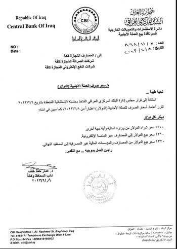 بالوثيقة.. تعميم من المركزي بشـأن سعر الدولار الجديد على جميع المصارف