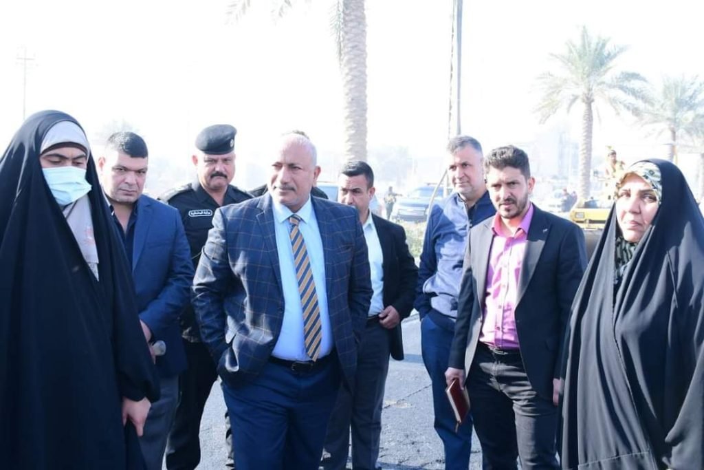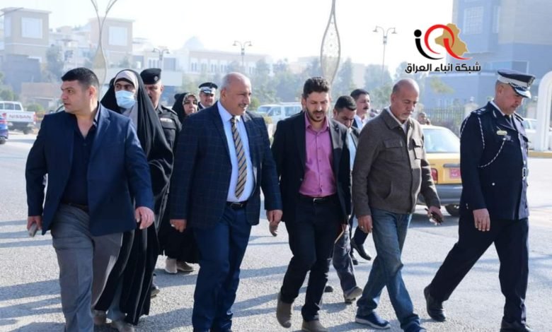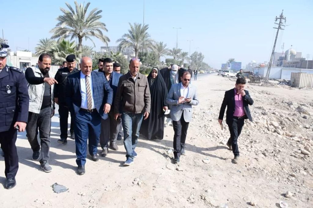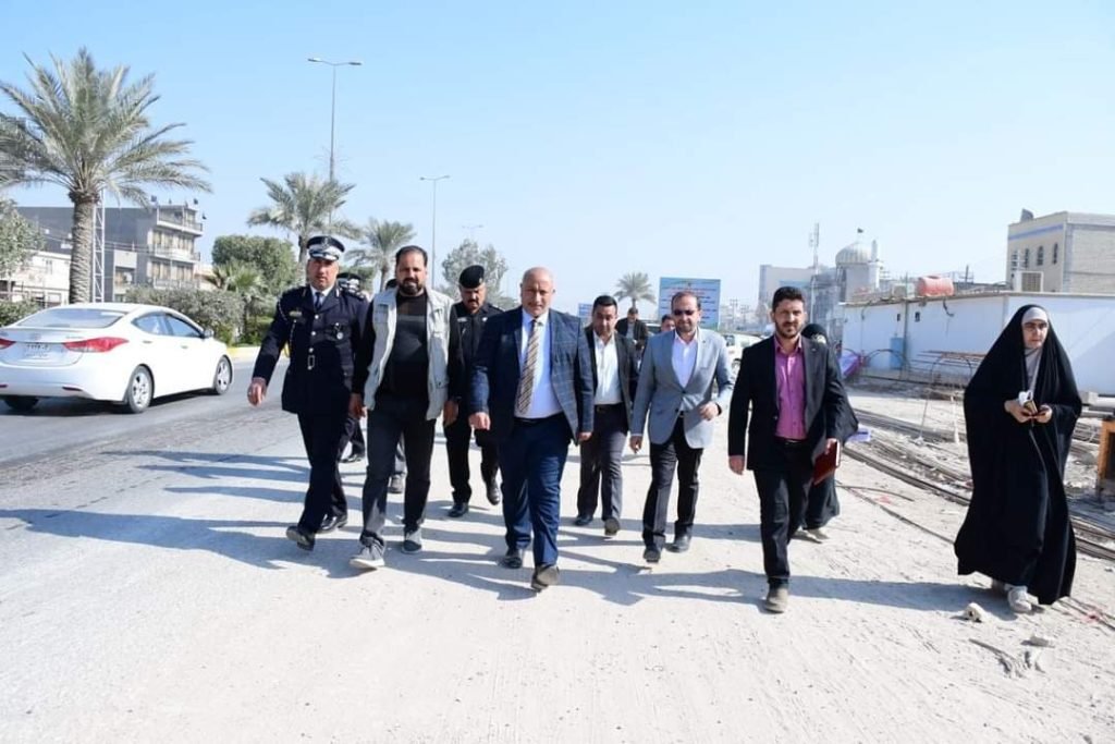 محافظ كربلاء المقدسة المهندس نصيف جاسم الخطابي يجري جولة ميدانية على المشاريع ترافقه الكوادر المتقدمة في المحافظة من مدير بلدية كربلاء ومدراء الاقسام في المحافظة