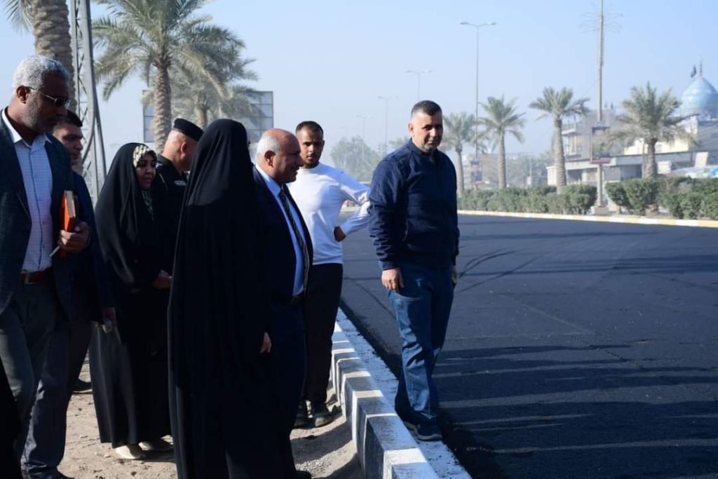 حيث اجرى جولة للاطلاع والاشراف بشكل مباشر على الاعمال التي تجري في مشروع تطوير شارع بغداد -كربلاء والذي يجري العمل به حاليا في اعمال الاكساء