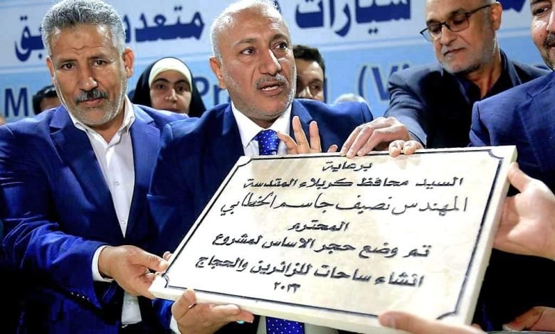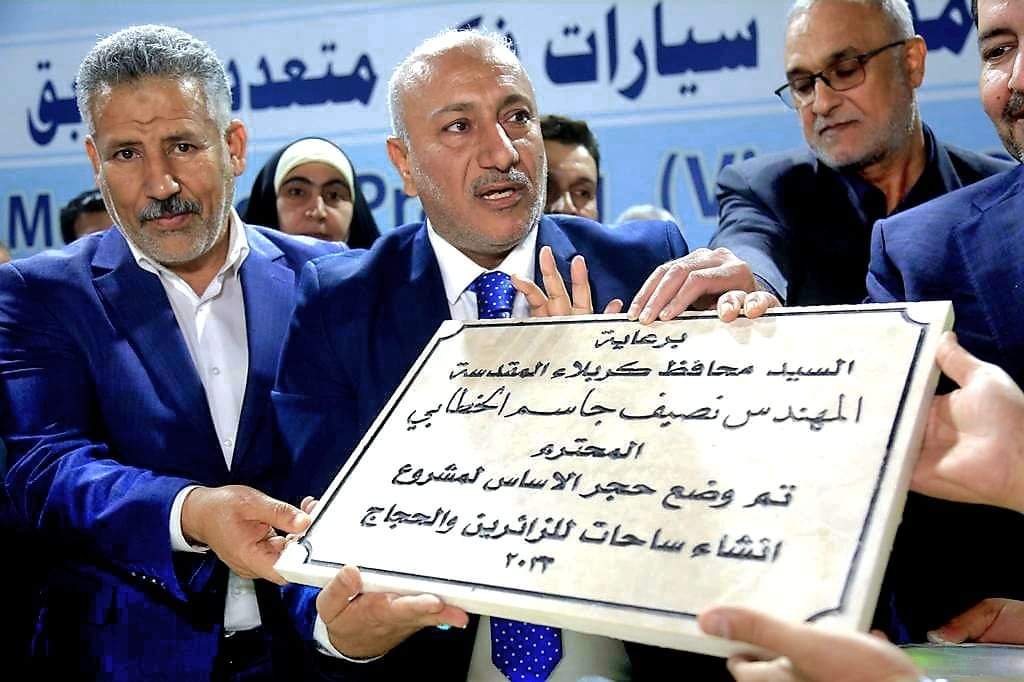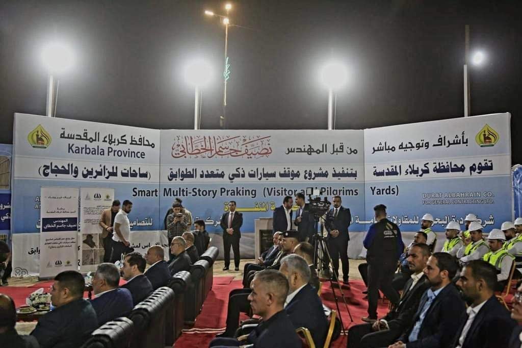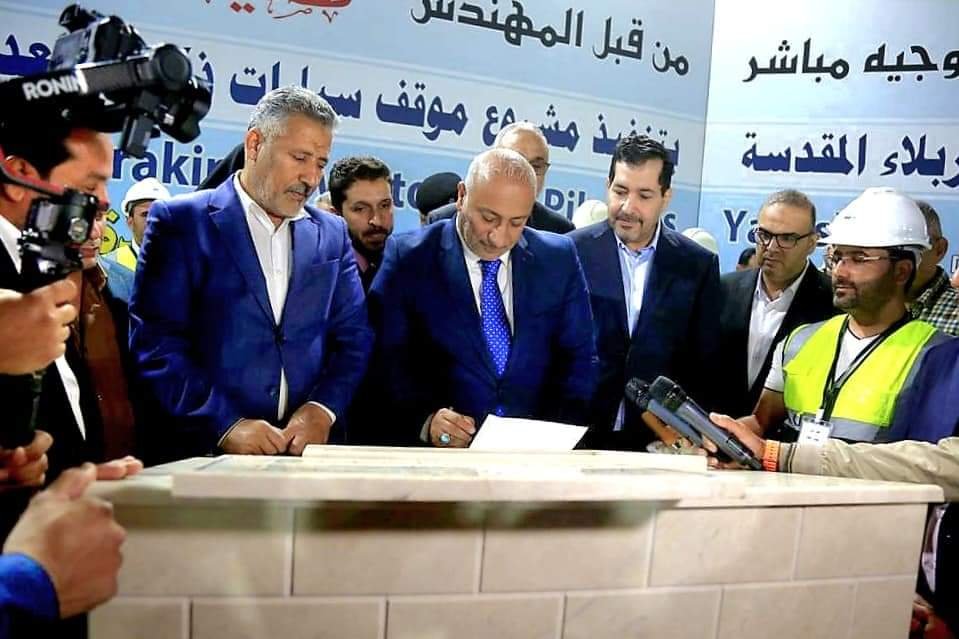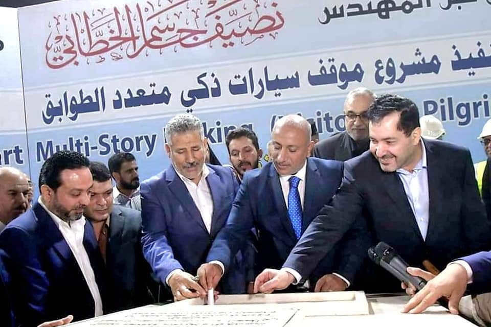 محافظ كربلاء المقدسة المهندس نصيف جاسم الخطابي يضع حجر الاساس لمشروع انشاء موقف سيارات ذكي متعدد الطوابق في خدمة الزائرين واهالي المدينة المقدسة