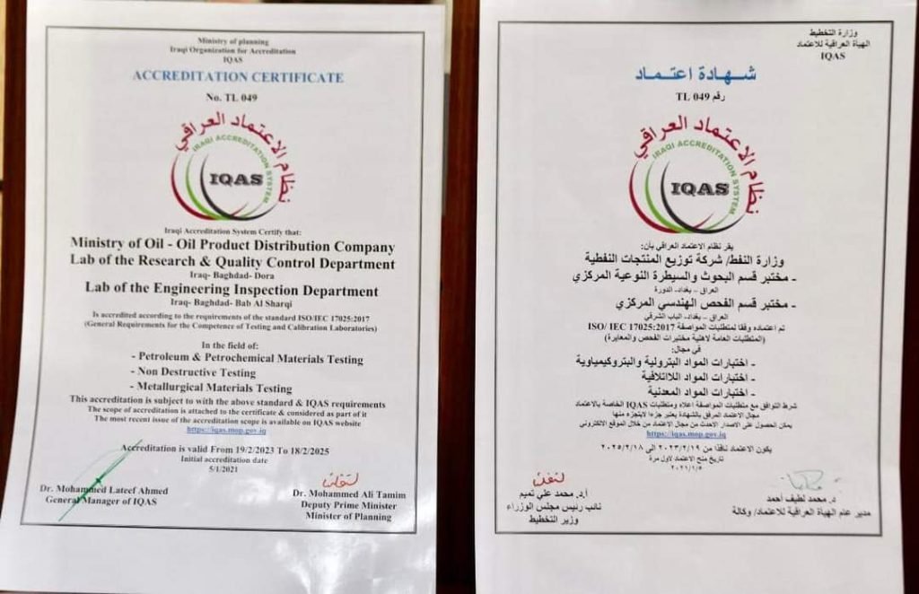 🔹اعلنت شركة توزيع المنتجات النفطية – قسم الجودة وتقييم الاداء المؤسسي حصول مختبرات الهيأة الفنية في الشركة على شهادة الاعتمادية الدولية الخاصة بالمختبرات IOS 2017 -27025 .