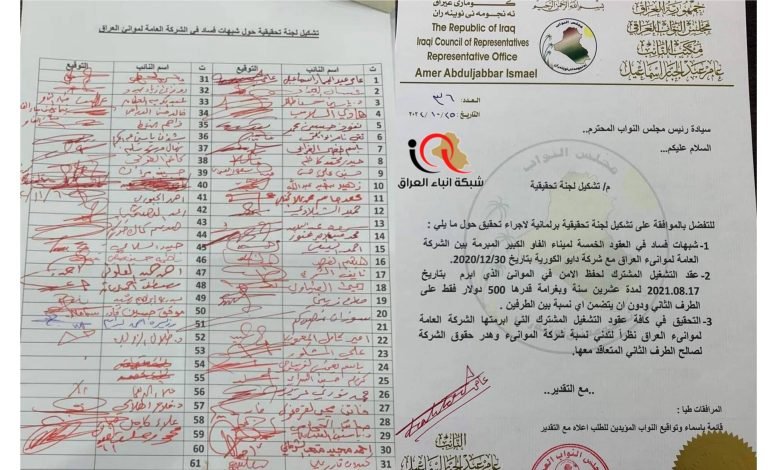 بالوثيقة .. اكثر من تسعين توقيعاً نيابي لفتح تحقيق بشبهات فساد بعقد شركة دايو الكورية المنفذة لمشروع ميناء الفاو.