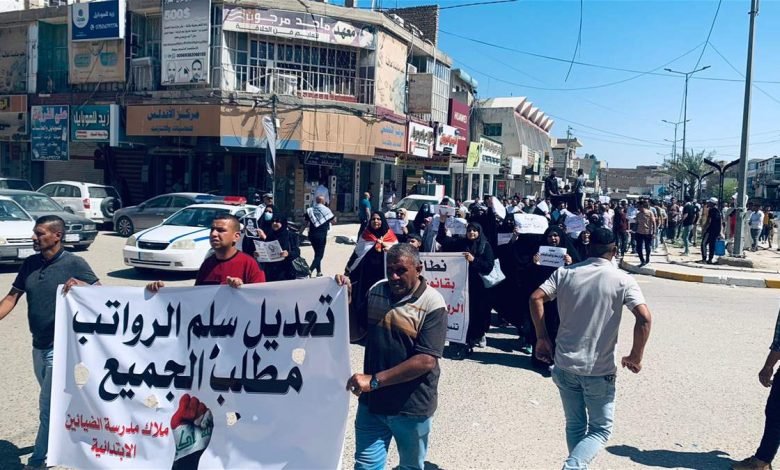 الديوانية.. تظاهرات حاشدة لموظفي دوائر الدولة للمطالبة بتعديل سلم الرواتب