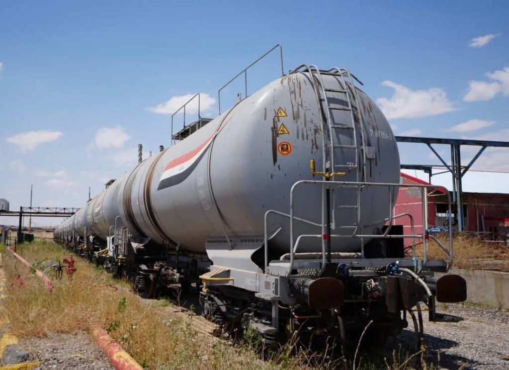 بواسطة الحوضيات ” الصهاريج ” و بواسطة حوضيات خطوط السكك الحديد. وبكمية (30000 ) الف برميل باليوم الى مؤانى الصادرات النفطية في الخليج ،