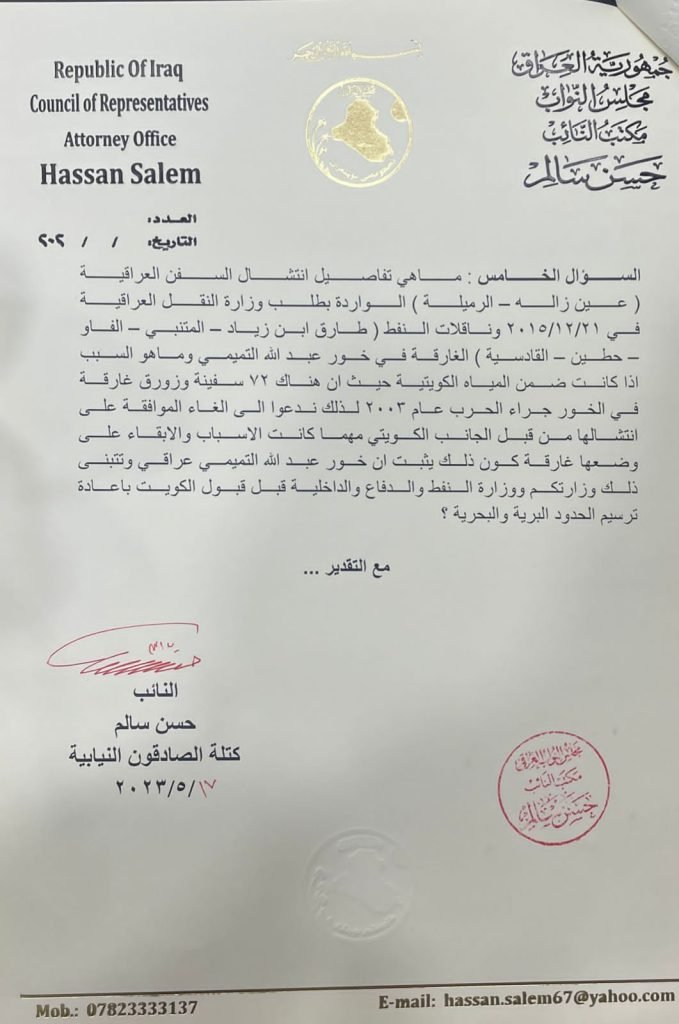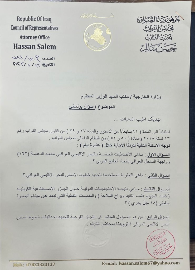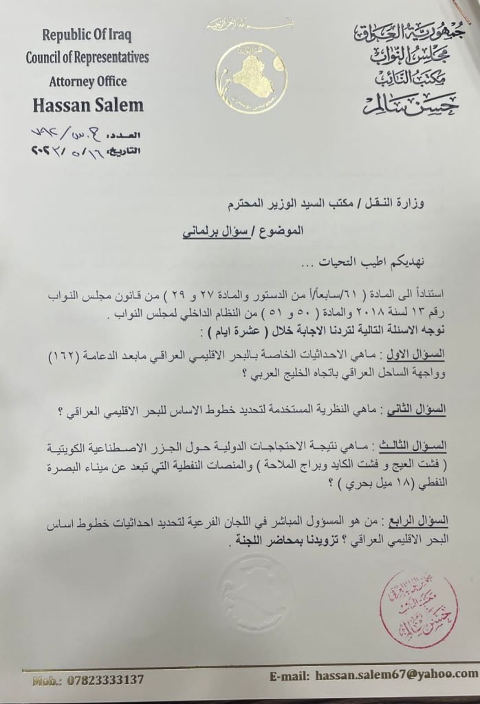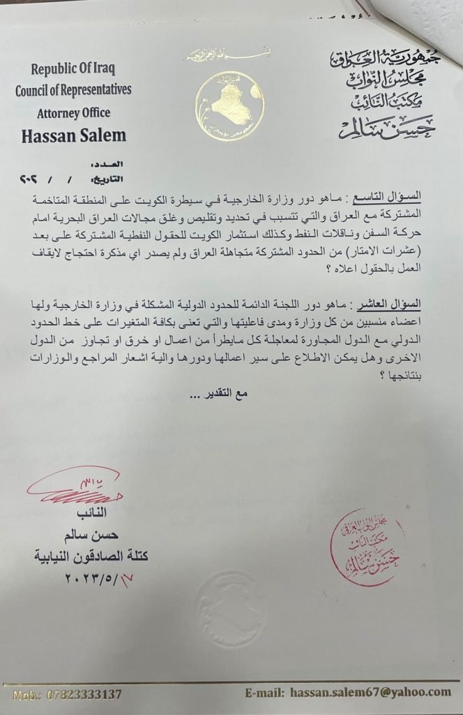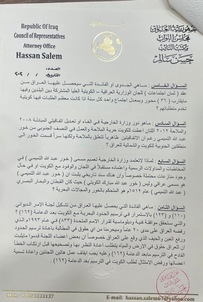 بخصوص لجان التفاوض مع الجانب الكويتي بخصوص ترسيم الحدود مع المطالبة بحلهما لعد قيامهم بواجبهم الوطني*