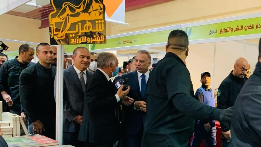 الكاظمي يفتتح معرض العراق الدولي للكتاب الذي اقامته مؤسسة المدى يرافقه امين بغداد المعمار علاء معن