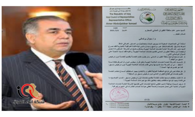 بالوثيقة النائب الاستاذ عامر عبد الجبار يخاطب مدير عام سلطة الطيران المدني