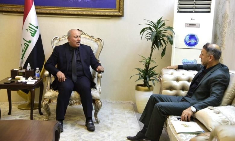 محافظ كربلاء المقدسة المهندس نصيف جاسم الخطابي يلتقي رئيس فرع نقابة الصحفيين مدير مكتب قناة العراقية في كربلاء المقدسة حسين الشمري