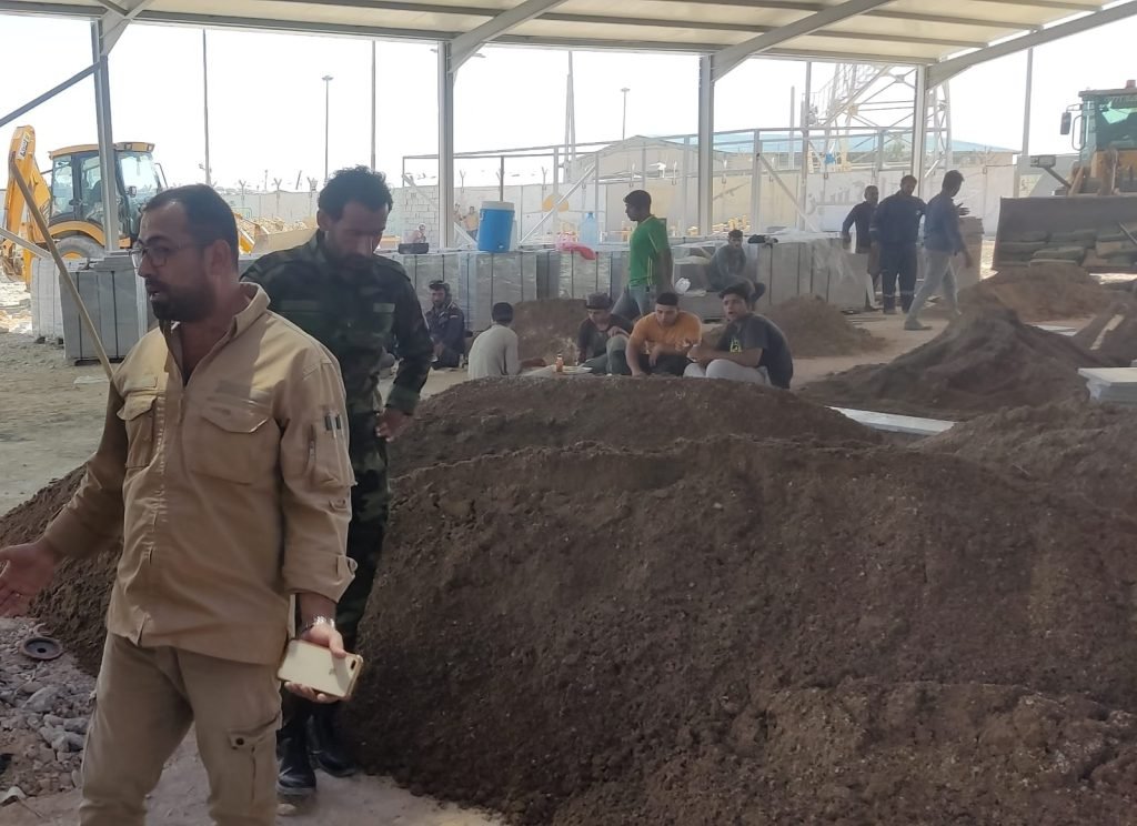 كما وباشرت اعمال نصب المسقفات والقاعات الخاصة بدخول وخروج الزوار وفرش الارضيات وتجهيزها بالمواد اللازمة لادامة زحم العمل اليومي .