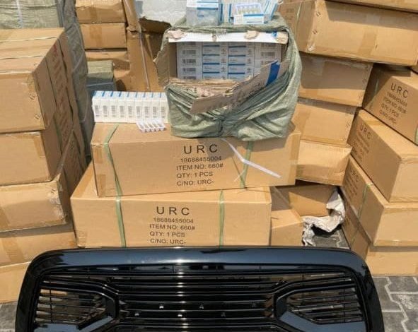 جهود متميزة لهيأة المنافذ الحدودية في ضبط المخالفات ومنع محاولات التهريب حيث تم ضبط حاوية محملة أدوية بشرية مخبأة خلف كماليات سيارات جديدة واقفاص بلاستك في منفذ ميناء أم قصر الأوسط