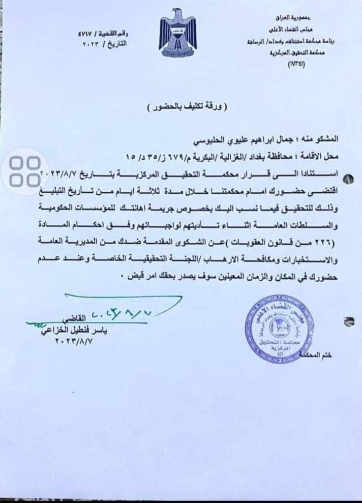 ندائي موجه بعد القضاء العراقي العادل النزيه ان شاء الله ..