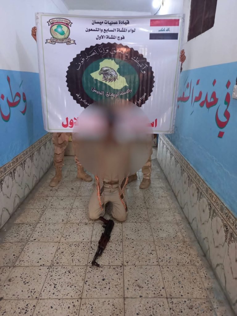 استناداً لتوجيهات قائد عمليات ميسان الفريق الركن محمد جاسم الزُبيدي بملاحقة المجاميع الخارجة عن القانون والمطلوبين للقضاء ، قوة من الفوج الأول للّواء المشاة السابع والتسعين / قيادة عمليات ميسان وبأمرة آمر الفوج وبعد المطاردة تُلقي القبض على “مسلح” أطلق النار على القوات الأمنية ، كذلك أثناء التجوال إلقاء القبض على طرفي مشاجرة في قضاء الكحلاء.