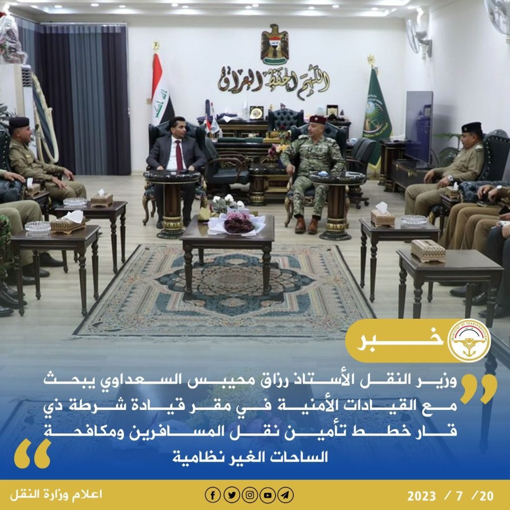 وبحث مع القيادات الأمنية في مقر قيادة شرطة ذي قار خطط تأمين نقل المسافرين ومكافحة الساحات الغير نظامية