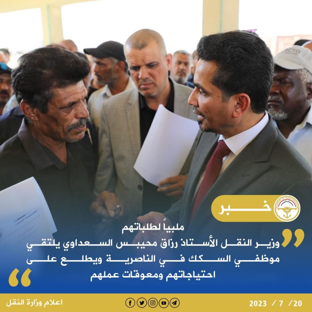 كما ألتقي السعداوي موظفي السكك في الناصرية ويطلع على احتياجاتهم ومعوقات عملهم