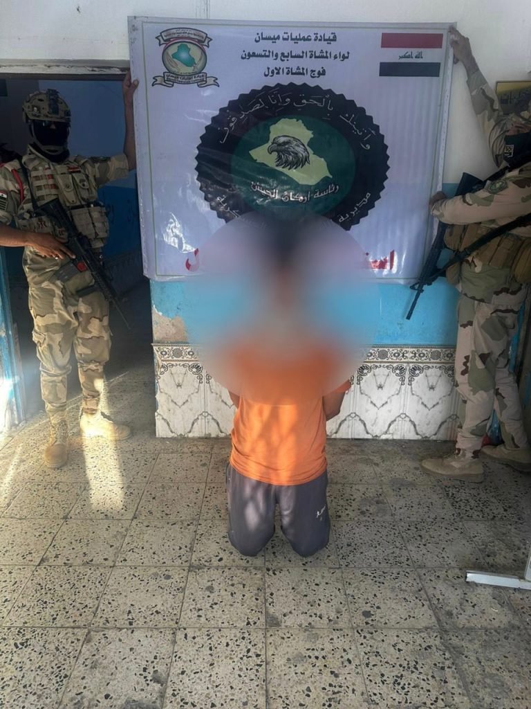 إستناداً لتوجهيات قائد عمليات ميسان الفريق الركن محمد جاسم الزبيدي بملاحقة المجاميع الخارجة عن القانون من مثيري النزاعات العشائرية والقبض عليهم ، بعد البحث والتفتيش ، تمكنت قوة من الفوج الأول للّواء المشاة السابع والتسعين التابع لقيادة عمليات ميسان وبالاشتراك مع مركز شرطة الكحلاء من إلقاء القبض على (٥) متهمين من مثيري النزاعات العشائرية في قضاء الكحلاء