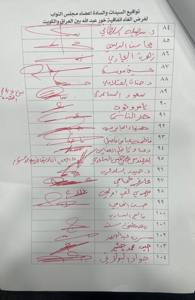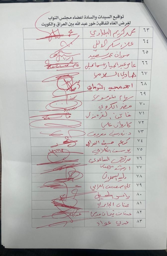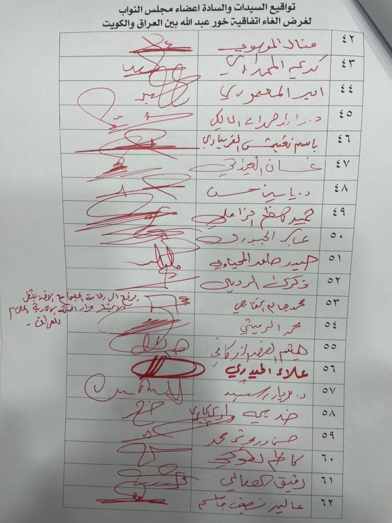 جمع النائب حسن سالم اكثر من ١٢٠ توقيع لغرض مطالبة وزير الخارجية بأيداع نسخة من قرار المحكمة الاتحادية العليا الخاصة بألغاء اتفاقية خور عبد الله بين العراق والكويت لدى كل من الامانة العامة للامم المتحدة والمنظمة البحرية الدولية (IMO) ويؤكد ضرورة الإجابة على الكتاب خلال فترة اقصاها 15 يوم.