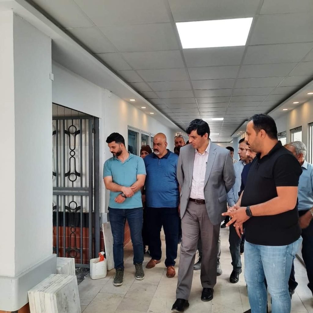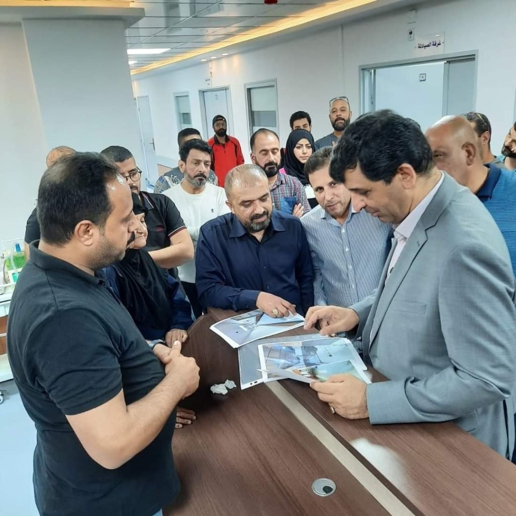 و شدد خلال جولته في أروقة المستشفى على اكمال مراحل التأهيل والمتابعة الدورية للفرق العاملة من قبل المهندس المقيم لحين اكمال العمل .