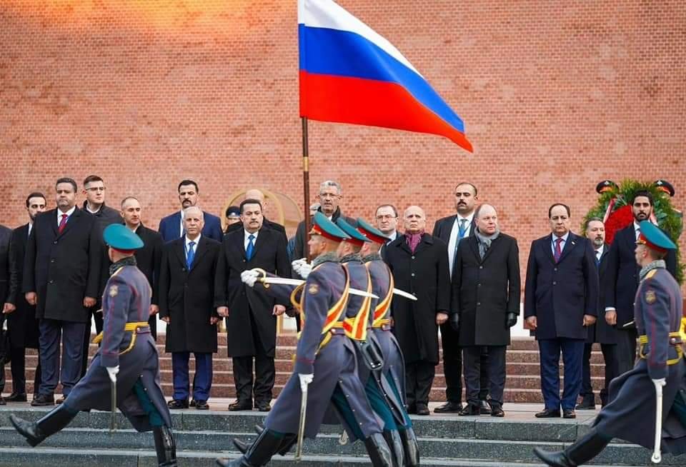 رئيس مجلس الوزراء السيد محمد شياع السوداني يضع إكليلاً من الزهور على نصب الجندي المجهول في روسيا