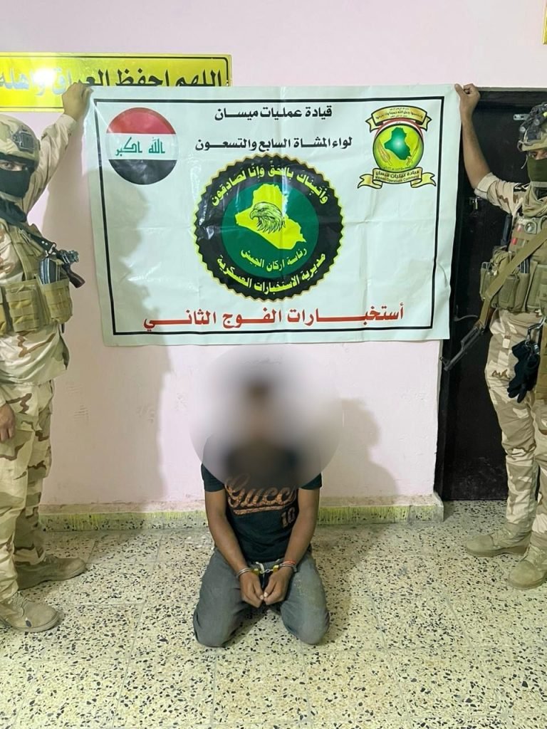 إستناداً لتوجيهات قائد عمليات ميسان الفريق الركن محمد جاسم الزبيدي بملاحقة المطلوبين للقضاء ومكافحة افة المخدرات والمؤثرات العقلية ، قوة من الفوج الثاني لواء المشاة السابع والتسعون التابع لقيادة العمليات وبالإشتراك مع شعبة مخدرات المجر الكبير تُلقي القبض على متهمَين أثنين مطلوبين وفق أحكام المادة (٢٨) تجارة المخدرات وبالإشتراك مع مركز شرطة العدل القبض على متهم أخر مطلوب وفق احكام المادة (٤٣٠) تهديد في قضاء المجر الكبير ، وتم تسليم المتهمين إلى الجهات المختصة.