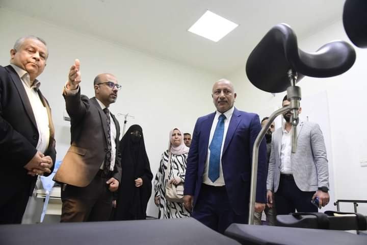 كما اطلع على اكمال اجراءات تأثيث المستشفى والتي استكملت كافة جوانبها الفنية والادارية وان تكون كافة الكوادر فيها من الكوادر النسائية.