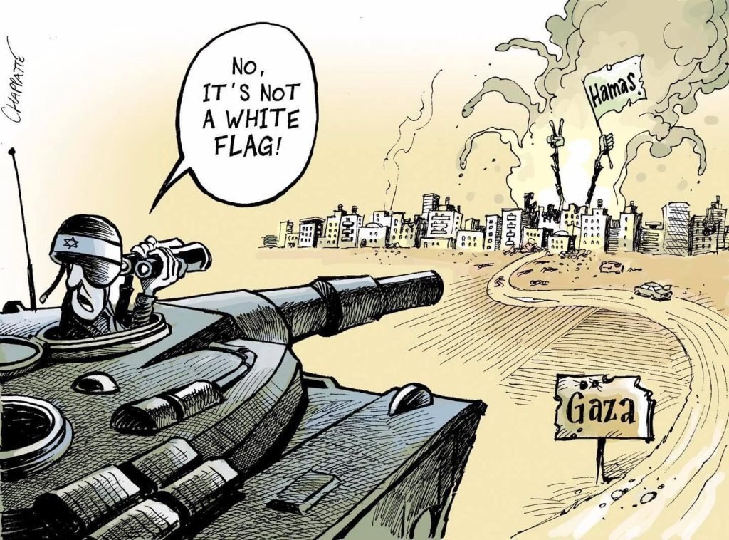 يواصل جيش الاحتلال الآن خطته بقتل المدنيين، وتشريدهم من بيوتهم. لا يوجد مكان آمن. ولا يوجد ملاذ يحتمون به. ولا كرامة للشيوخ والمرضى وحديثي الولادة. الكل في نظر اسرائيل عبارة عن أهداف متحركة مرشحة للموت في اي لحظة. جمع غفير من الاطباء والطواقم الطبية يتساقطون كل يوم داخل الردهات العلاجية. .
